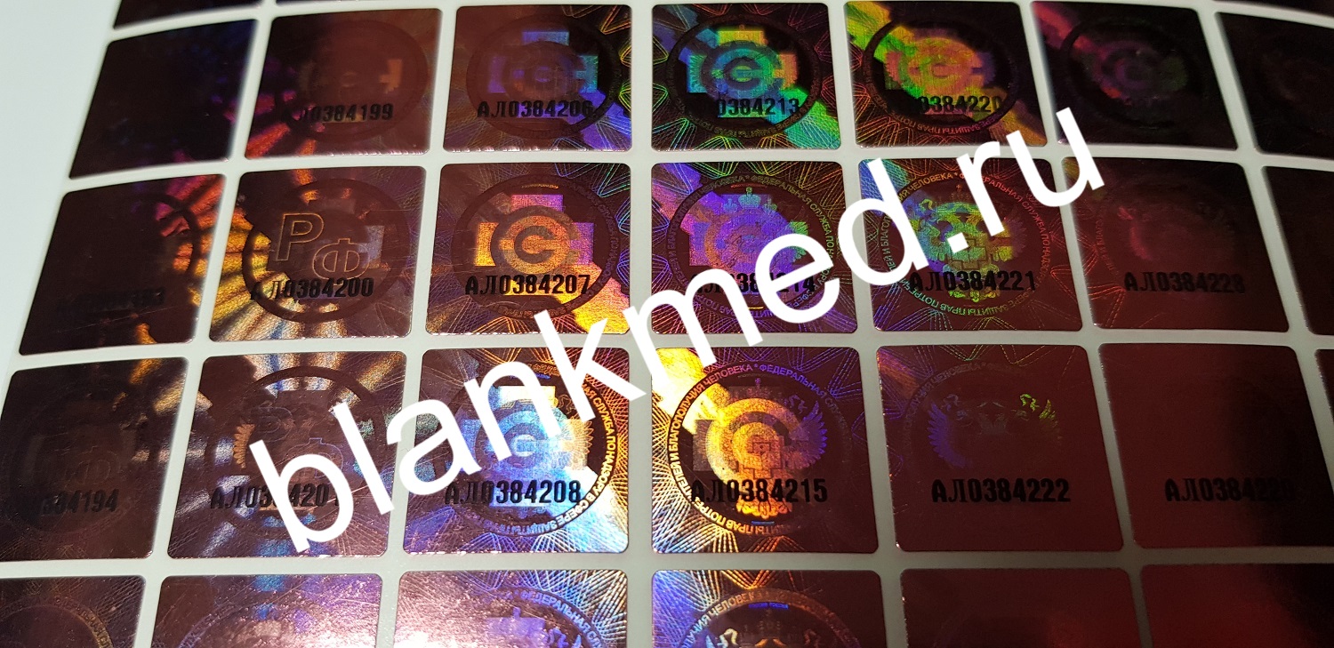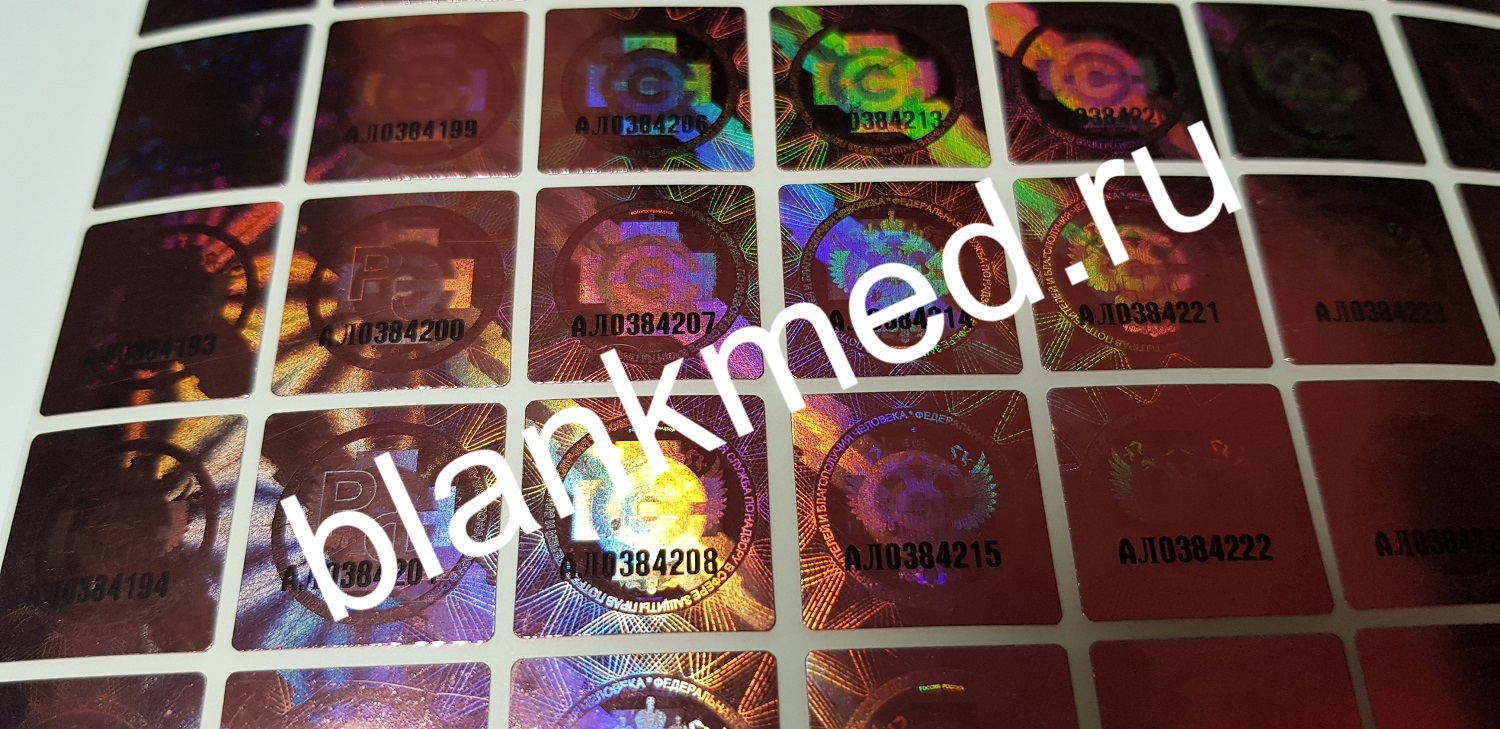 Производство голограмм для медицинских книжекМедицинская книжка является одним из важных документов, который необходимо иметь определенной категории граждан. Бланк должен быть у персонала, работающего на профессиях и должностях, связанных с людьми, продажей продуктов и сферой обслуживания. Однако при современном уровне оборудования этот официальный документ может быть подделан. Предложений купить медицинские голограммы подобного качества в интернете с избытком. Вся ответственность за поддельные документы ложится на руководство компании, где будет обнаружен факт нарушения. Это наказание прописано на законодательном уровне. Одним из методов проверки подлинности документа является голограмма установленного образца, которая клеится в двух местах медкнижки методом прессования под температурным воздействием. Давайте рассмотрим более подробно голограммы, места их установки, а также возможность на нашем сайте купить круглые голограммы оптом. Весь товар сертифицирован, изготовлен с соблюдением необходимых требований, ГОСТов и содержит всю информацию, предусмотренную законодательством. Мы предлагаем подлинные медицинские голограммы оптом! Подробнее о медицинских книжкахМедкнижка — официальный документ, бланк которого установлен на законодательном уровне РФ. Он содержит индивидуальную информацию о состоянии здоровья человека. Дополнительно в ней размещается информация о прохождении профилактических и лечебных процедур, результаты анализов (список которых меняется в зависимости от профессии), сведения о прослушивании курса санитарного минимума. Для прохождения официального осмотра специалистами требуется довольно продолжительное время, в среднем порядка двух недель. Часть сотрудников предпочитает покупать фальсифицированные документы и не тратить личное время. Последствия таких действий весьма нежелательны, как для компании, так и для окружающих. Дело в том, что за распространение ряда болезней предусмотрена уголовная ответственность. Подлинная книжка имеет несколько степеней защиты, среди которых одним из основных является голографическая наклейка. Какие голограммы вклеиваются в медицинскую книжку?Согласно утвержденному государством образцу в медкнижку вклеиваются две голограммы — круглая и еще одна квадратной формы. На голограмме расположена надпись с фотоэффектом, которая состоит из переливающихся разными цветами при изменении ракурса букв. Отличительная особенность подлинной медкнижки — надпись «Роспотребнадзор» в правом верхнем углу каждой страницы. Кроме того, при попадании света голограмма переливается радужным цветом и приобретает малиновый окрас. На ней размещено изображение официального знака СЭС — креста на фоне флага Российской Федерации. При наклоне под определенным углом изображение меняется на двумерную эмблему Роспотребнадзора (двуглавый орел со щитом). Обратите внимание! До 2013 года наклейка была выполнена в серебряном цвете, на данный момент такая форма недействительна. Наклейки располагаются в определенных местах, а именно: