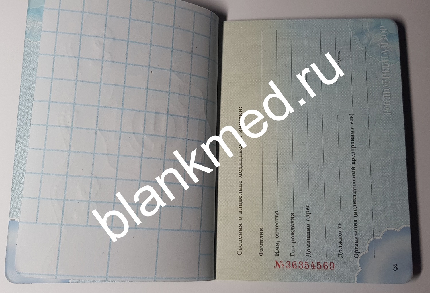• медкнижки от производителя печатаются на плотной бумаге с водяными знаками;